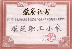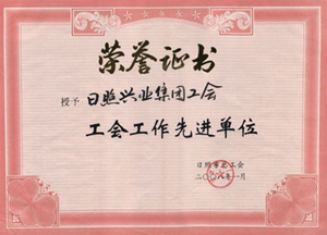 ·2008年,授予“日照興業(yè)集團有限公司工會房地產開發(fā)有限公司工會模范職工小家”