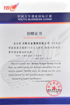 ·2010年,中國青年創(chuàng)業(yè)國際計劃捐贈證書
