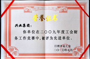 ·2010年7月,興業(yè)集團(tuán)在2009年度工會財務(wù)工作競賽中,被日照市總工會評為先進(jìn)單位