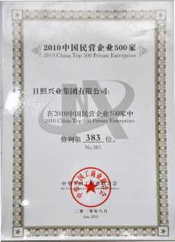 ·2010年8月,興業(yè)集團(tuán)在2010中國民營企業(yè)500家中列383位