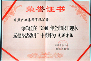 ·2010年10月,興業(yè)集團(tuán)在“2010年全市職工迎水運健身活動月”中被日照市總工會評為先進(jìn)單位