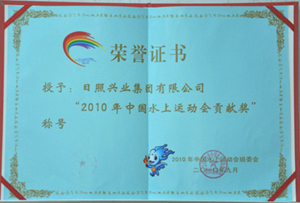 ·2010年9月,授予興業(yè)集團(tuán)“2010年中國水上運動會貢獻(xiàn)獎”稱號