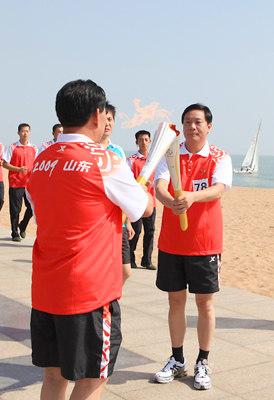 秋高氣爽,風(fēng)和日麗。9月23日上午,日照海濱彩旗飄揚(yáng),萬眾歡騰,主題為“祝福祖國,共享全運(yùn),國泰民安,傳遞和諧”的中華人民共和國第十一屆運(yùn)動(dòng)會火炬?zhèn)鬟f活動(dòng)在日照舉行。集團(tuán)董事長丁杰光榮成為全運(yùn)會的火炬手,參加了當(dāng)天全運(yùn)會火炬日照傳遞活動(dòng)。
