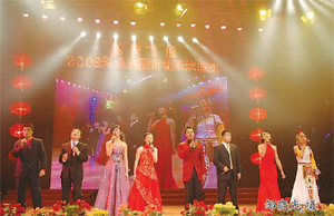 is gotta be you》展現(xiàn)了興業(yè)年輕一代的青春風(fēng)采。魔術(shù)《劍懸少女》為晚會(huì)制造了緊張氣氛,我們的心真的懸了起來。專題片《來自墨西哥的祝!穾Ыo了我們奮斗在異國他鄉(xiāng)的同事們的真誠祝福,現(xiàn)場塵土飛揚(yáng),機(jī)器轟鳴,而他們卻在無怨無悔的奉獻(xiàn)著,我們用熱烈的掌聲向他們表示了超高的敬意。《卡門狂想》跳出了興業(yè)人的熱情與奔放。吉他彈唱《一封家書》唱出了遠(yuǎn)離家鄉(xiāng)、遠(yuǎn)離父母、奮斗在興業(yè)各條戰(zhàn)線上的兒女們思家和感恩父母的情懷。舞蹈《軍中姐妹》展現(xiàn)了房產(chǎn)銷售一線的姑娘們的志氣與豪邁。舞蹈《康定情歌》那快節(jié)奏的舞姿淋漓盡致的散發(fā)出了興業(yè)人精神抖擻、昂首前進(jìn)的精神風(fēng)貌。歌舞《龍船調(diào)》給我們講述了一個(gè)少數(shù)民族愛情故事。三句半《說唱興業(yè)》那搖頭晃腦、詼諧的說唱風(fēng)格逗的觀眾捧腹大笑。獨(dú)唱《遇上你是我的緣》用優(yōu)美的歌聲唱出了在興業(yè)工作的同仁們惜緣、惜福、惜興業(yè)的感情。由興業(yè)投資建校培育出的小精靈們?yōu)槲覀儙淼摹垛弮喉懚.?dāng)》,讓我們夢回童年。舞蹈《世紀(jì)春雨》的舞者都是年過半百的阿姨,她們用心靈跳出了對美好生活的贊美。獨(dú)唱《愛我中華》為整臺(tái)晚會(huì)獻(xiàn)上了一道專業(yè)的精美大餐。接著雜技《滑稽球》將整臺(tái)晚會(huì)帶到了最高潮,藝術(shù)家周天那搞笑的面孔、詼諧的表演手段,讓所有的觀眾都唏噓不已、掌聲不斷......整臺(tái)晚會(huì)歷時(shí)兩個(gè)多小時(shí),節(jié)目品種齊全,高潮接連不斷,晚會(huì)氣氛熱烈、節(jié)目檔次質(zhì)量高、觀眾激情高漲,,一曲《激情飛越》帶動(dòng)了所有的演員及集團(tuán)領(lǐng)導(dǎo)班子一同上臺(tái)同聲歌唱,最后晚會(huì)在悠 揚(yáng)的歌聲中落下帷幕......