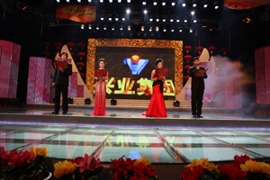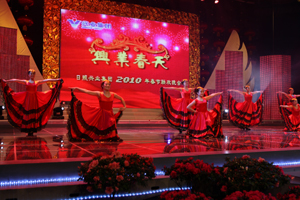 | 璀璨舞臺道祥瑞,歡歌笑語賀新春。2月7日下午,日照廣播電視臺1000米演播大廳里歌聲飛揚(yáng),熱鬧非凡,“興業(yè)春天”日照興業(yè)集團(tuán)2010年春節(jié)聯(lián)歡晚會在這里成功舉辦。日照興業(yè)集團(tuán)領(lǐng)導(dǎo)班子和來自興業(yè)各條戰(zhàn)線上的職工代表500余人歡聚一堂,滿懷喜悅的觀看了這場由興業(yè)人自編、自演、自導(dǎo)的文藝晚會。