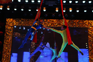 整場晚會以興業(yè)集團(tuán)成立10周年走過的光輝歲月為主線,在興發(fā)公司選送的歌伴舞《吉祥頌》中拉開了帷幕,伴隨著激越的鼓點(diǎn)、歡快的舞蹈、喜悅的歌聲,霎時,千米演播大廳成為了歡樂的海洋。興業(yè)房產(chǎn)公司選送的歌舞《紅旗飄飄》、《愚公移山》,唱出了興業(yè)人對偉大祖國的熱愛和百折不撓的創(chuàng)業(yè)精神;興業(yè)汽配公司選送的《前門情思大碗茶》京味十足,集團(tuán)機(jī)關(guān)選送的原生態(tài)陜北民歌《山丹丹花開紅艷艷》和青春奔放的流行歌曲《改變自己》,展現(xiàn)了興業(yè)人多才多藝的時代風(fēng)采;天泰鋼構(gòu)公司田雯雯一曲《美麗心情》抒發(fā)了興業(yè)人對美好生活的熱愛和追求;房產(chǎn)公司姑娘們表演的富有濃郁民族特色的新疆舞《西域風(fēng)情》,勾起觀眾對邊疆風(fēng)情的片片遐想。集團(tuán)機(jī)關(guān)創(chuàng)作的配樂詩朗誦《興業(yè)十年頌》和音樂群口快板《說唱興業(yè)房產(chǎn)》,讓全場觀眾打開記憶之門,重溫了興業(yè)集團(tuán)10年的發(fā)展歷程,更是喚醒了興業(yè)人強(qiáng)烈的歷史使命感和自豪感,迸發(fā)出一股強(qiáng)大的自我升華的豪邁激情。青島永杰的姑娘們帶來的《激情水鼓》,奏響迎春盛典,震耳欲聾的鼓聲配合激昂的音樂,水花飛濺,光芒四射,引爆全場激情。友誼商店的姑娘們表演的運(yùn)動時裝秀和社區(qū)老年人表演的太極功夫扇《夕陽美》,活力十足的青春魅力與剛?cè)岵?jì)的白發(fā)矍鑠,演繹出了一幅興業(yè)大家庭的和諧美景。公司選送的小品《風(fēng)波》和興發(fā)公司選送的山東快書《大老郭趕春晚》,情趣交融,令人捧腹,反映出了當(dāng)代建筑工人的情感世界和興業(yè)人對企業(yè)的無限熱愛之情。雜技《夢幻藍(lán)綢》驚險(xiǎn)刺激,動人心魄,引起場下觀眾陣陣驚呼。當(dāng)全場觀眾期待已久的北京《OOB美少女組合驚艷亮相時,場下掌聲雷動,歡呼一片,動感十足的青春美少女用她們的成名作《地球媽媽》和一首《心想事成》,甜歌勁舞,征服了全場觀眾,再掀晚會新高潮!吧揭粯拥臍馄,海一樣的魂,春天里走來了興業(yè)人”,伴隨著晚會主題歌曲《興業(yè)春天》的響起,《興業(yè)春天》興業(yè)集團(tuán)2010年春節(jié)聯(lián)歡晚會華彩落幕。