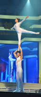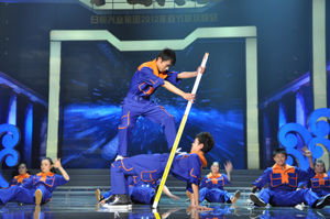 STAR》,引起全場(chǎng)雷動(dòng)歡呼;同德礦業(yè)公司選送的雜技《肩上芭蕾》驚險(xiǎn)刺激,來自北京雜技團(tuán)的年輕演員們?cè)谕榧绨蛏线~起輕盈的舞步,場(chǎng)下觀眾驚呼不已,拍手叫絕;臨汾志強(qiáng)鋼鐵公司的漢子們表演的威風(fēng)鑼鼓《堯天舜日》高亢激昂,令觀眾們心潮澎湃,更激發(fā)了大家開創(chuàng)美好未來的激情和斗志。