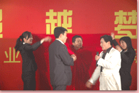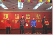 瑞犬凱歌辭舊歲,花豬起舞賀新年。2月6日晚,凱萊大酒店會展中心 內(nèi)歌聲悠揚、掌聲陣陣,“2007年日照興業(yè)集團迎春聯(lián)歡文藝晚會”正在這里舉行。集團領導丁杰、王建國、韓金軍、趙文強、申作華、李麗萱、李春賢以及集團機關、各分公司的標兵、先進工作者、職工代表近400人一起興致勃勃地觀看了演出。全國政協(xié)委員、民革中央畫院院長、國畫大師宋雨桂應邀出席了晚會。市內(nèi)各大銀行、日照日報、日照電視臺等單位的領導、記者、工作人員也觀看演出,歡聚一堂,共慶新年。